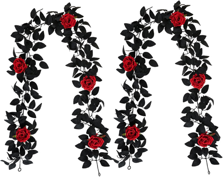2Pcs Halloween Garlands 5.7ft Artificial Rose Garland with Black Vines Hanging Vine Halloween Decorations for Table Room Party Wall Decor.
